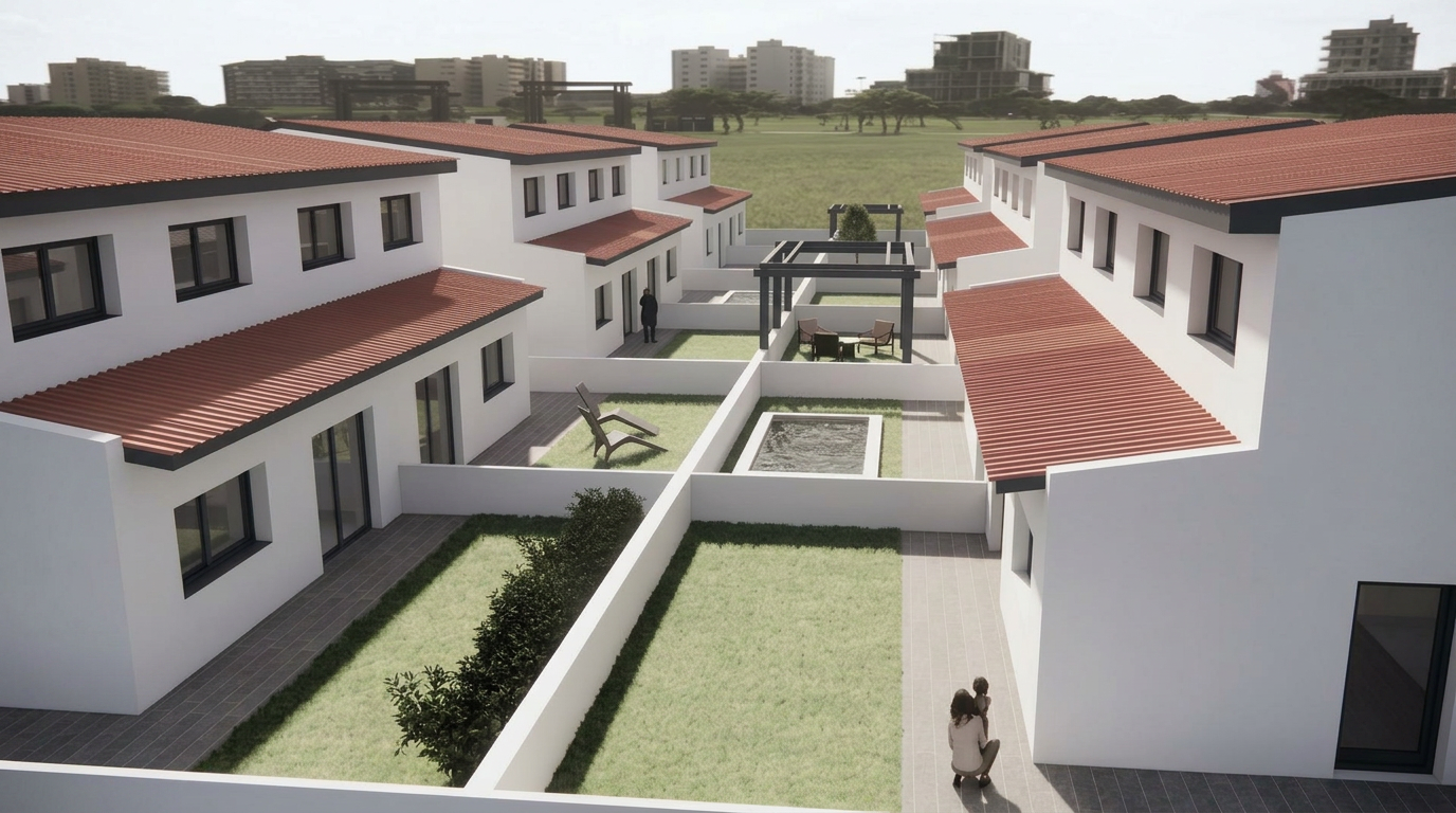 Estem estudiant desenvolupar la promoció en règim cooperatiu amb la possibilitat d'adquirir una parcel·la de 200 m² per 46.000€, amb l'estructura de fonamentació i el forjat sanitari ja executats.
